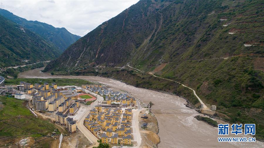建于怒江边的大兴地镇维拉坝“珠海小区”已初现规模(6月24日无人机拍摄)。新华社记者胡超摄