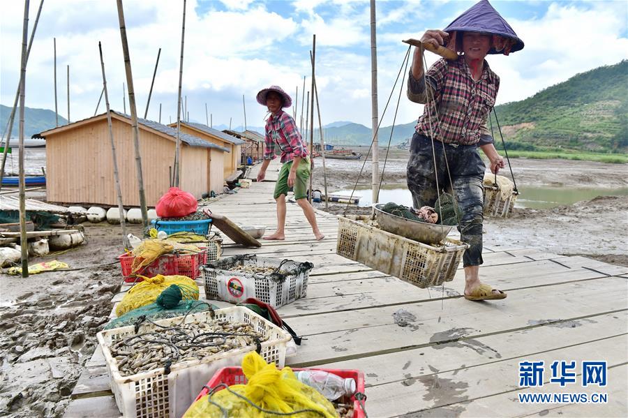 8月22日,福安市溪邳村村民将收获的海蛏挑回家。新华社记者林善传摄