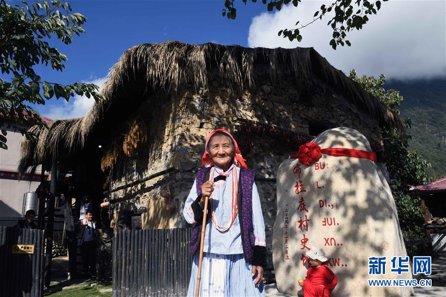 11月2日,云南福贡县鹿马登乡干布村的一位傈僳族老人在村民以前居住的茅草房前。新华社记者杨宗友摄
