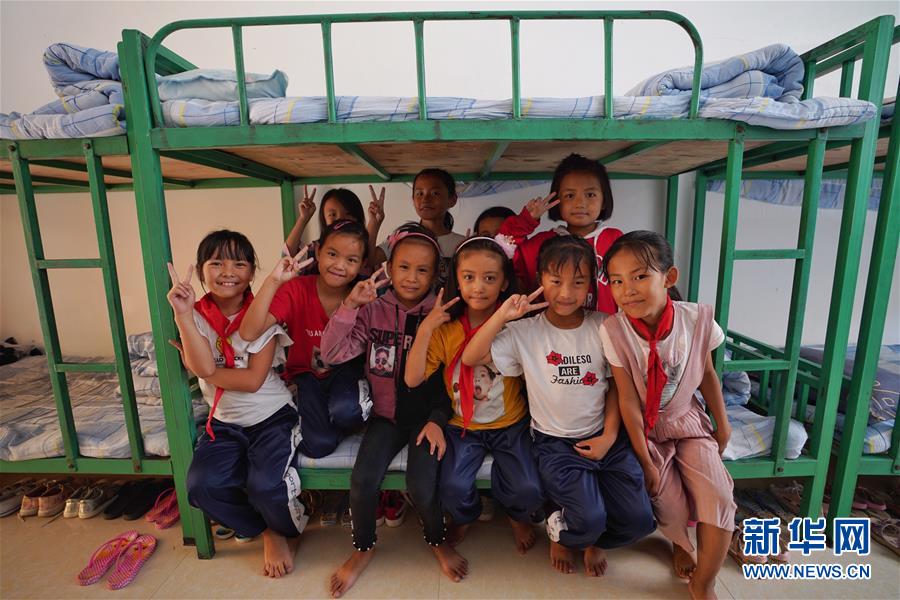 大兴地镇维拉坝“珠海小区”小学一年级学生在宿舍合影(6月24日摄)。新华社记者秦晴摄
