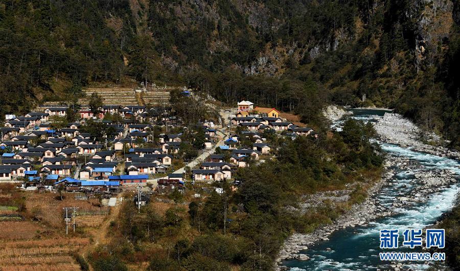 位于独龙江畔的独龙江乡迪政当村的集中安居房一景(2016年11月23日摄)。新华社记者蔺以光摄