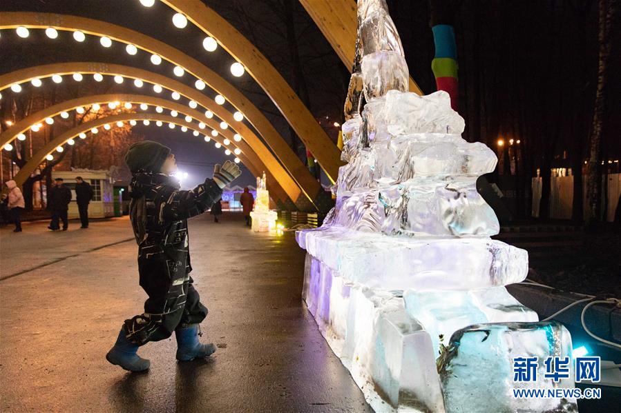 12月24日,在俄罗斯首都莫斯科,小朋友参观冰雕艺术展。 哈尔滨冰雕艺术展24日在莫斯科开幕,现场展出了哈尔滨大剧院、防洪纪念塔以及莫斯科红场建筑群等惟妙惟肖的冰雕作品,吸引众多游客驻足拍照。 参加本次冰雕艺术展的十名冰雕师提前抵达莫斯科,以新中国成立70周年、中俄建交70周年、“一带一路”倡议等为主题,为莫斯科民众奉上了精美的新年礼物。 新华社记者 白雪骐 摄