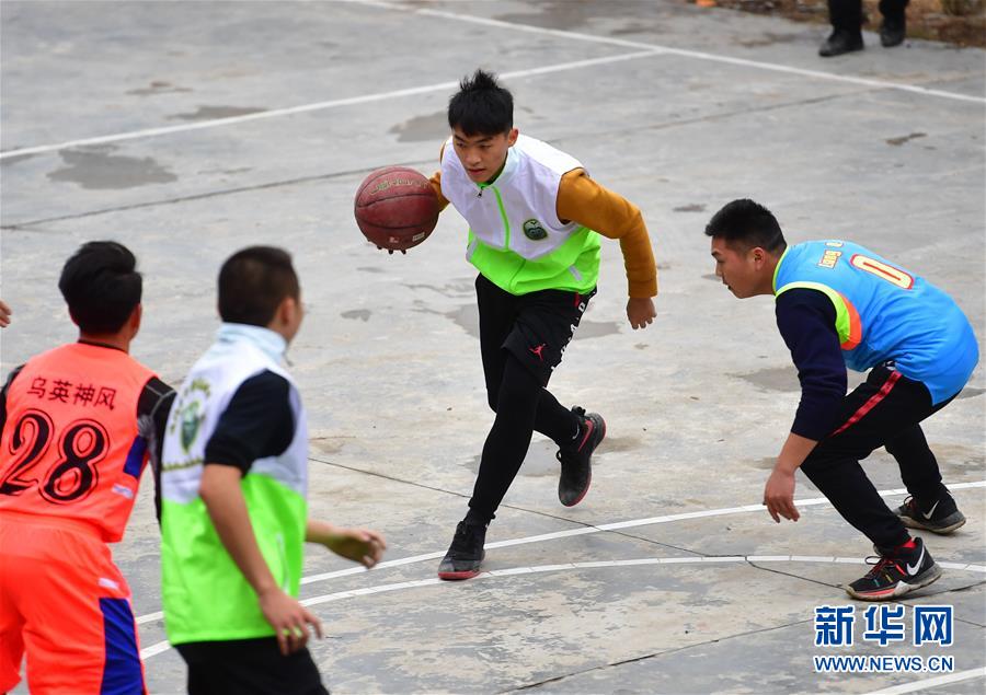 12月26日,澳门青年艺能志愿工作会的义教老师林家伟(右二)在篮球比赛中带球突破。 新华社记者 王诺 摄