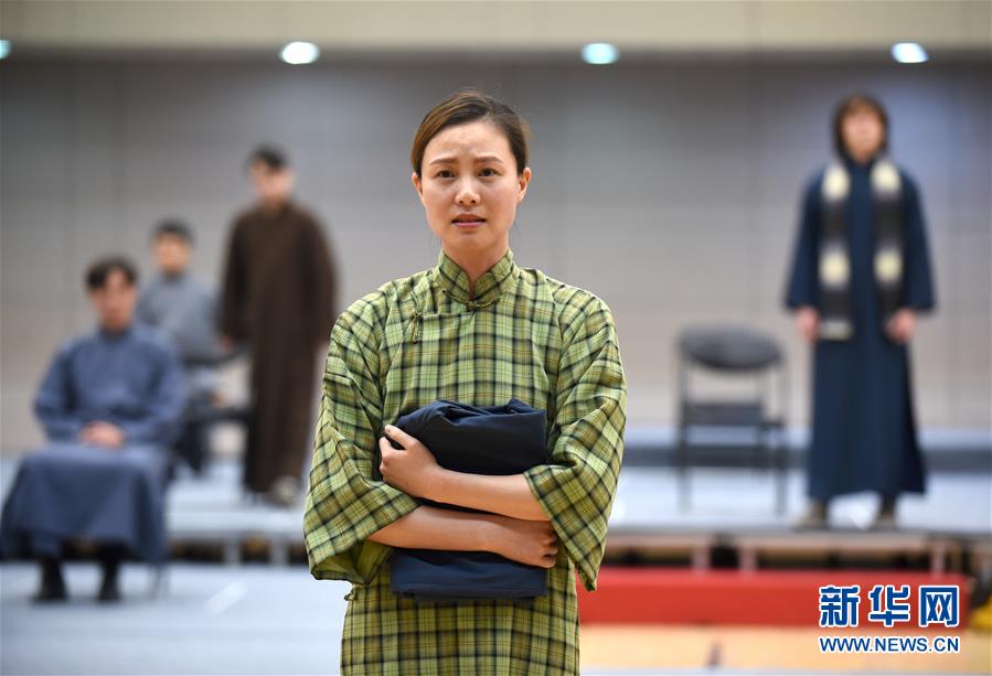 12月26日,在话剧《二月》中饰演文嫂的演员黄薇在排练。 新华社记者 罗晓光 摄
