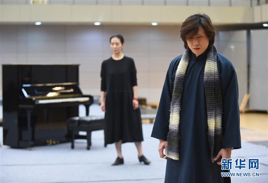12月26日,在话剧《二月》中饰演陶岚的演员卢芳(前左)在排练。 新华社记者 罗晓光 摄