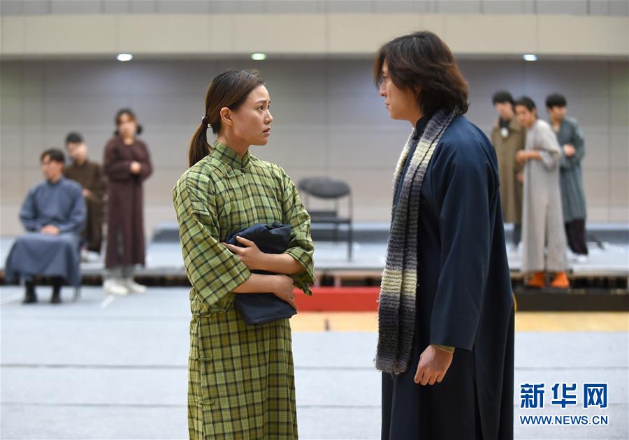 12月26日,在话剧《二月》中饰演文嫂的演员黄薇(左)和饰演萧涧秋的演员王玮在排练。 新华社记者 罗晓光 摄