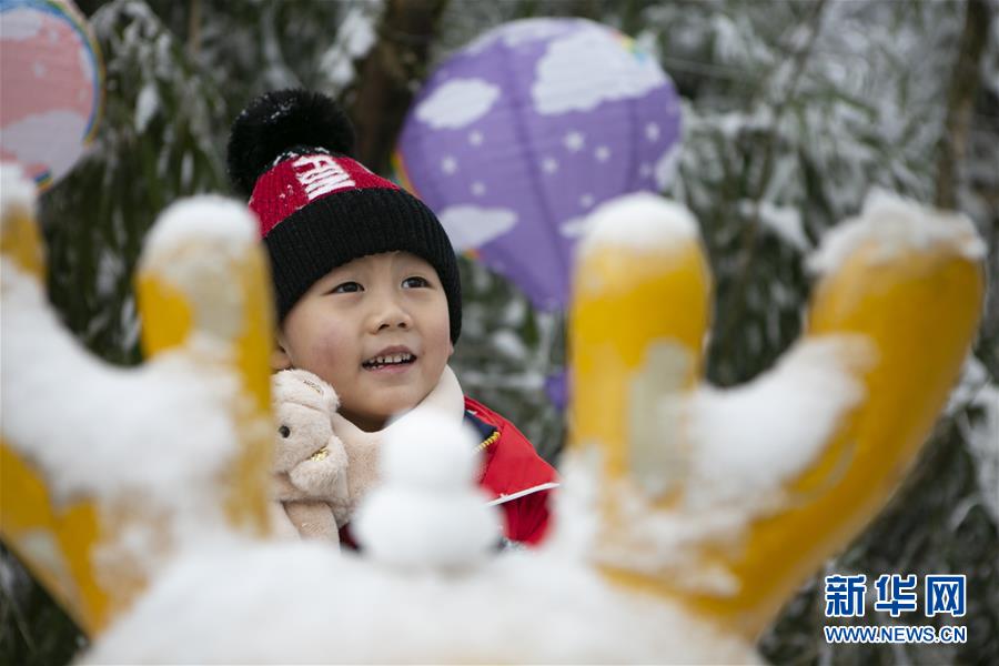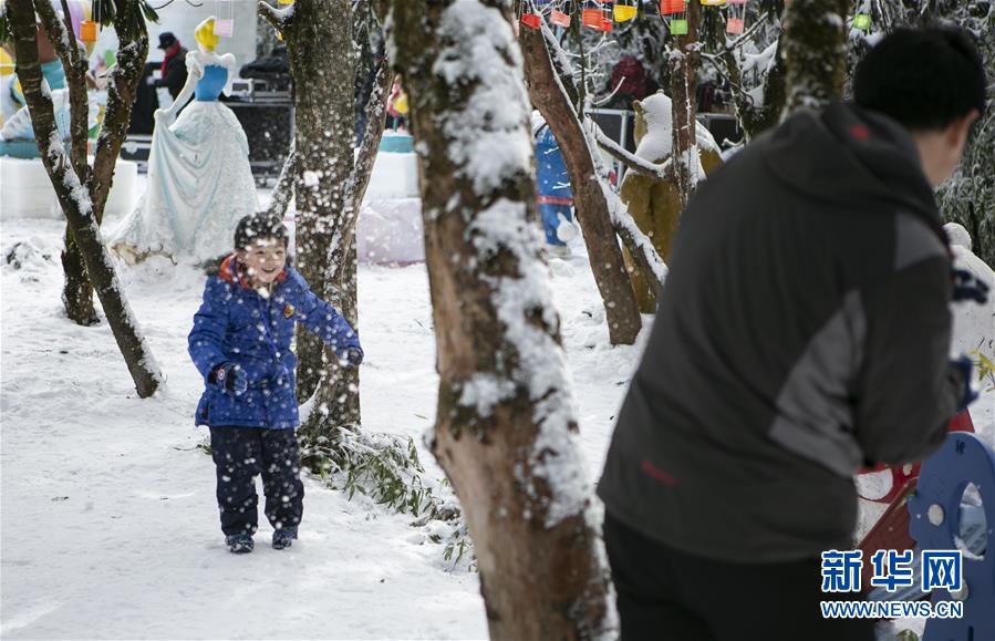 12月28日,小朋友在峨眉山风景名胜区玩雪。新华社记者李梦馨摄