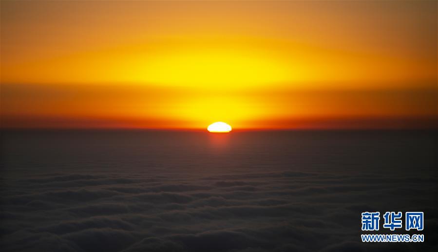 这是12月29日在四川省峨眉山金顶拍摄的日出。时值冬日,峨眉山银装素裹、宛如仙境。新华社记者李梦馨摄