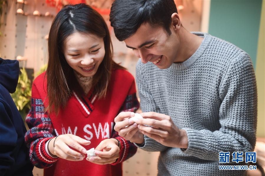 12月27日,中外青年在瓜山新苑社区活动中心参加迎新年活动,一起包饺子。新华社记者 徐昱 摄