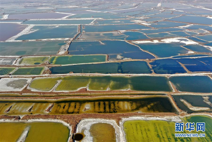 12月27日无人机拍摄的山西运城盐湖。 冬日时节,从空中俯瞰位于山西省运城市的盐湖,景色如画。 新华社记者曹阳摄