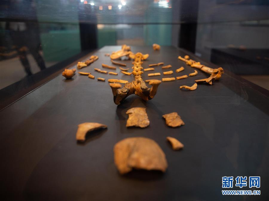 非洲有着悠久的历史和灿烂的文化。走进非洲的博物馆,探寻人类文明的起源和发展步伐。 埃塞俄比亚国家博物馆位于首都亚的斯亚贝巴,以收藏有“人类祖母”之称的古人类化石露西闻名。1974年,考古学家在埃塞俄比亚一处谷地发现了属于一个古人类女性的大量骨骼化石,化石占完整骨骼的40%,研究人员用一首甲壳虫乐队的歌将其命名为露西。 这是2019年5月17日在埃塞俄比亚首都亚的斯亚贝巴的埃塞俄比亚国家博物馆拍摄的露西化石展品。 新华社记者 吕帅 摄