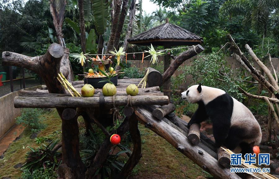 海口:大熊猫“撸串”迎新年