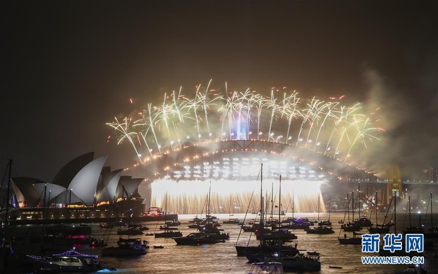 当地时间2020年1月1日,澳大利亚悉尼歌剧院和海港大桥畔燃放烟花,庆祝2020年的到来。新华社记者白雪飞摄