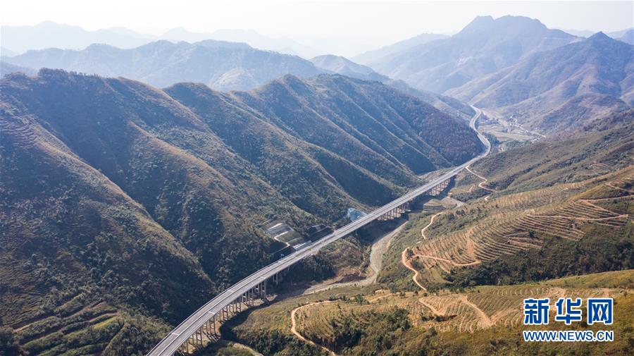这是紫望高速紫云南至边饶段(无人机照片,1月1日摄)。新华社记者陶亮摄