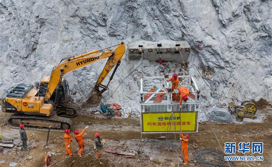 阿布洛哈村三面环山,几乎全是悬崖绝壁;一面依水,金沙江支流西溪河流淌而过。以前,村民们进出村需攀爬悬崖上凿出来的一条小路;村里的物资主要靠马驮人背,走一趟要3个多小时。交通成为村里脱贫攻坚最大的“硬骨头”,全村65户253人,目前仍有建档立卡贫困户29户182人。为打通交通瓶颈,当地政府决定修建一条3.8公里的四级通村公路。今年11月,工程在进行到“最后一公里”时,施工队伍发现悬崖两侧多为碎屑岩、变质岩等,原本规划修建的C型隧道很难推进。专家决定修建悬崖摆渡车,确保村民年底前能顺利出行;同时,改C型隧道为全隧道,继续修建通村公路,项目预计2020年4月完工。新华社记者江宏景摄
