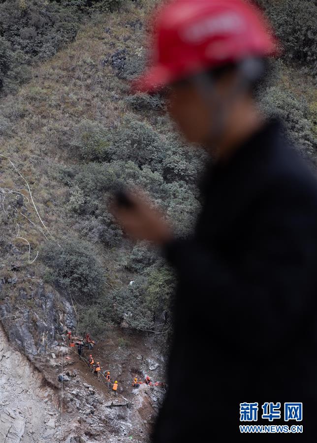四川路桥施工队伍在陡崖上作业(2019年11月20日摄)。阿布洛哈村通村公路施工遇到陡崖夹沟地势,项目进程艰难缓慢,四川路桥施工队伍开始在峡谷两端分头推进。新华社记者江宏景摄