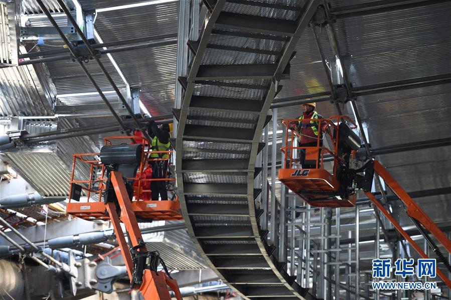 12月31日,施工人员在国家速滑馆施工现场安装最后一块屋面单元板块。新华社记者鞠焕宗摄