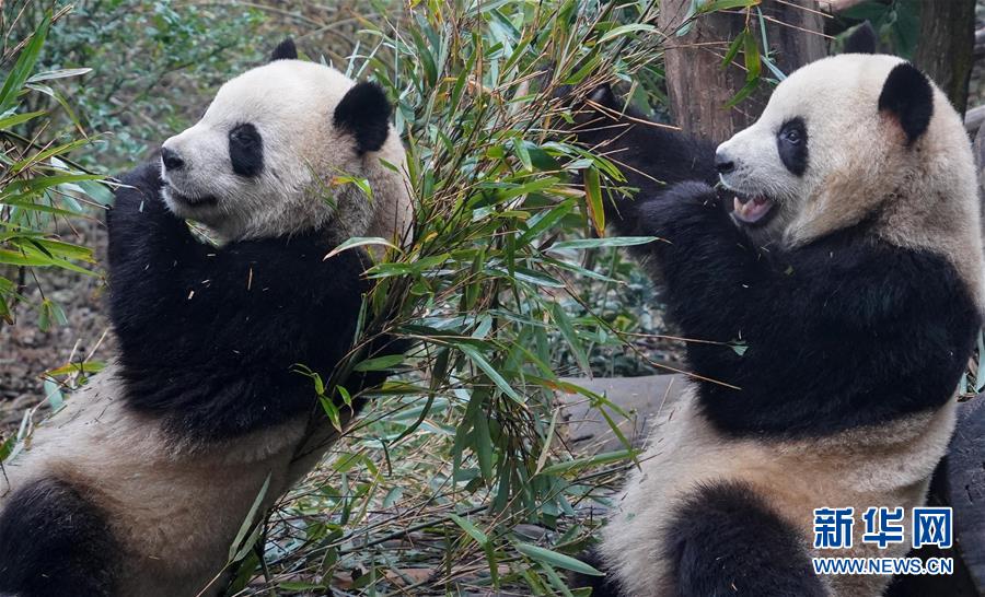 这是1月1日在成都大熊猫繁育研究基地拍摄的大熊猫。 新华社发(谢怡 摄)