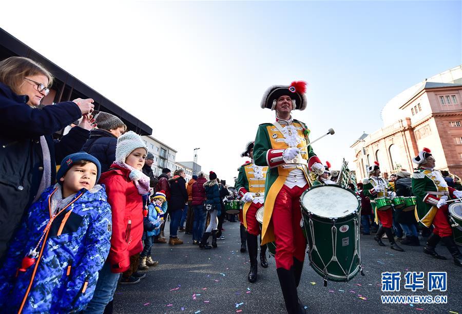 1月1日,在德国美因茨,人们参加新年游行活动。