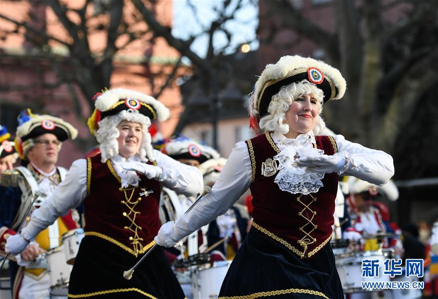 1月1日,在德国美因茨,人们参加新年游行活动。新华社记者逯阳摄