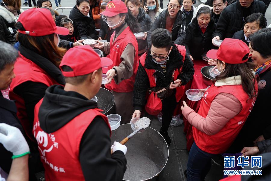 1月2日,志愿者在阆中古城贡院广场给大家发放腊八粥。 当日是农历腊月初八腊八节,四川阆中古城举行“万人同品腊八粥”活动,当地居民和众多游客在贡院广场免费享用腊八粥。 新华社记者 江宏景 摄