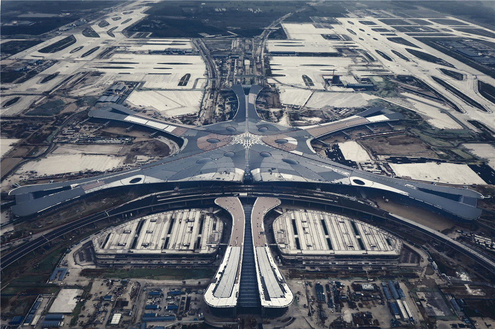 2018年12月26日,航拍北京大兴国际机场,形如展翅的凤凰。大兴国际机场由普利策奖建筑学奖获得者扎哈设计,预计2019年6月30日前全面竣工,2019年9月30日投入运营。张乔/视觉中国