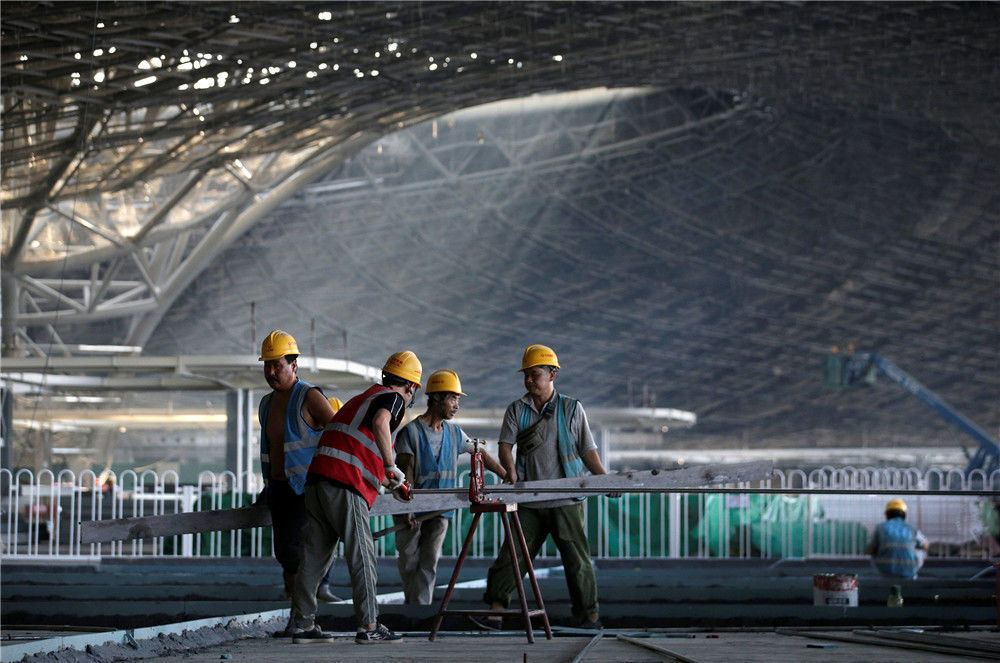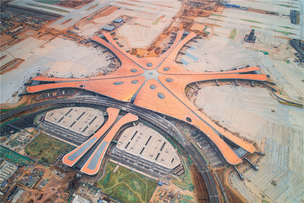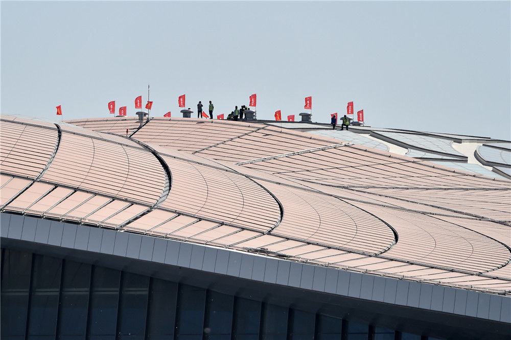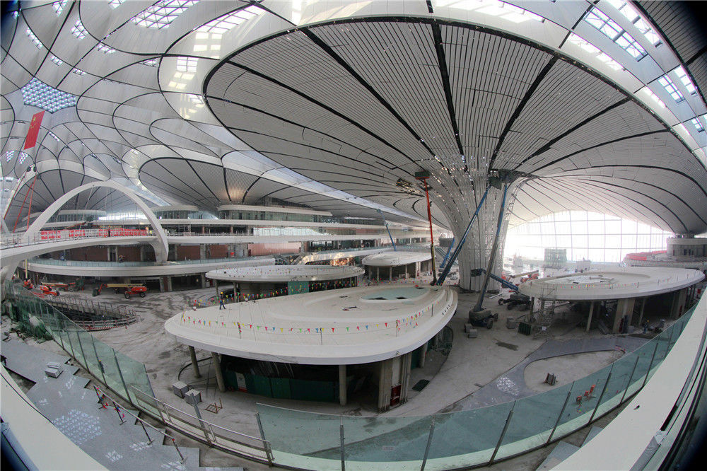 2019年5月24日,北京,新机场建设距离竣工时间还有37天,工程进入倒计时。机场开建至今不到5年时间,机场施工工程将于6月底竣工,将于9月底投入运营,该机场有望成为世界上规模最大的机场之一。任振朝/千龙图像/视觉中国