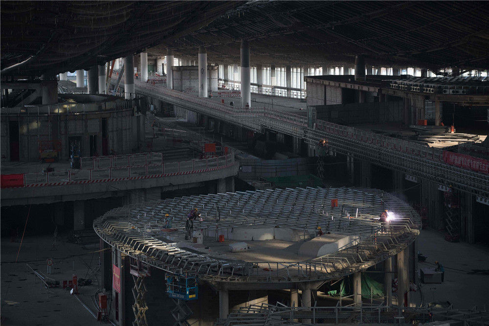 2019年1月20日,北京,探访北京大兴国际机场航站楼,建设工地正在如火如荼地有条不紊地建设之中。丁帮学/千龙图像/视觉中国