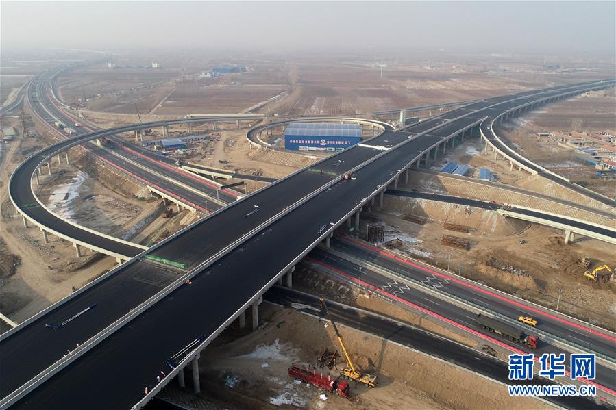 这是1月3日拍摄的北京大兴国际机场北线高速公路廊坊段王场互通枢纽(无人机照片)。