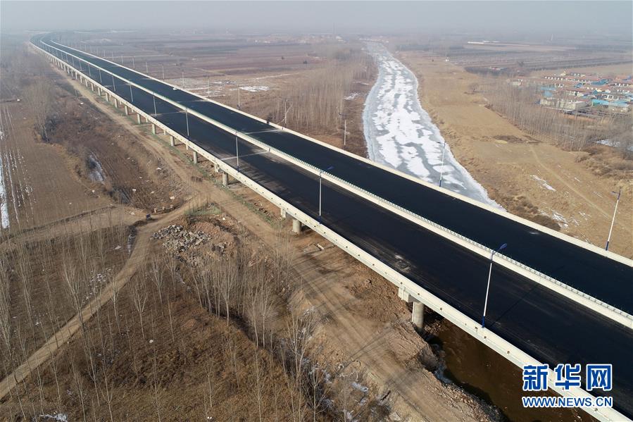 这是1月3日拍摄的北京大兴国际机场北线高速公路廊坊段龙河特大桥(无人机照片)。新华社记者牟宇摄