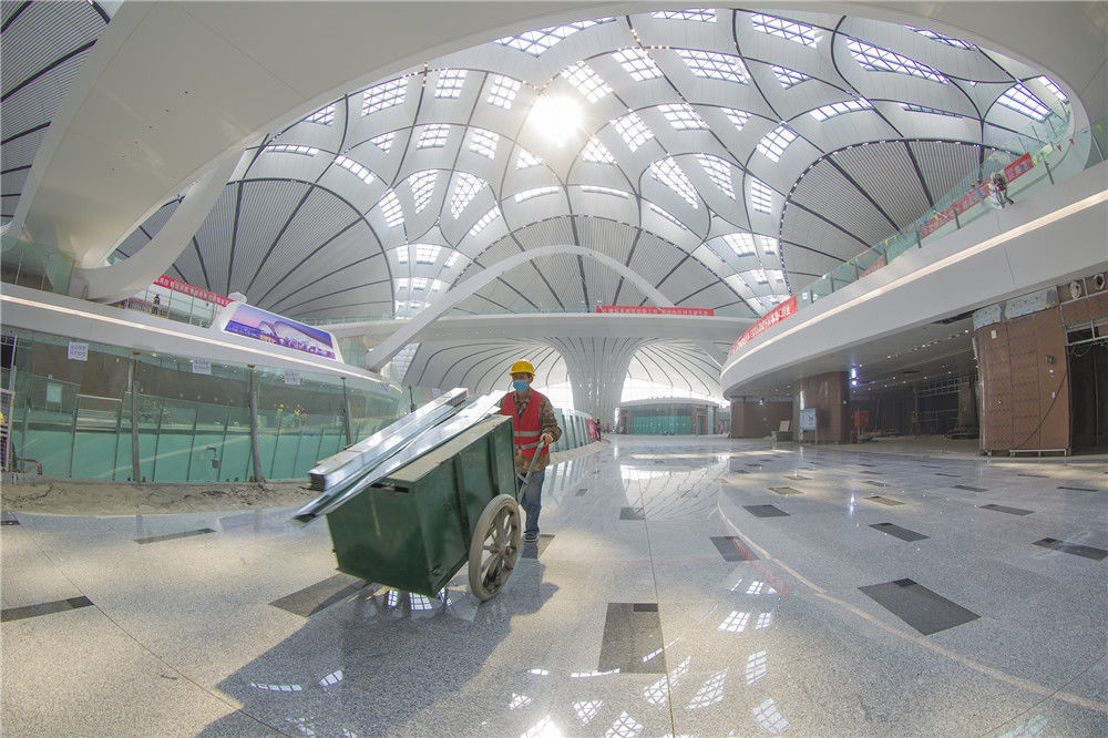 2019年4月26日,北京大兴国际机场将于9月底正式通航。工程建设进入总攻阶段,目前,航站楼内部装饰进行收尾的工作。武辉/千龙图像/视觉中国