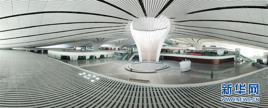 这是6月14日无人机拍摄的北京大兴国际机场航站楼内景(全景拼接照片)。新华社记者才扬摄