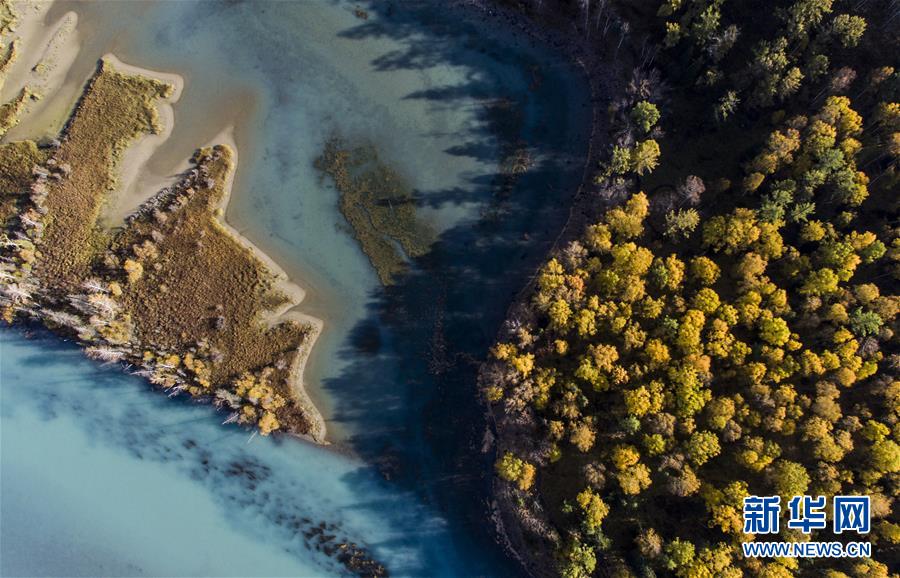 9月25日无人机拍摄的喀纳斯景区风光。新华社记者王菲摄