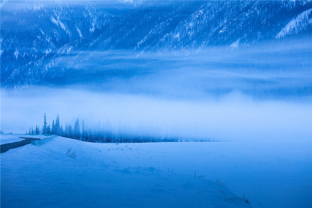 2019年2月17日,新疆,冬季的喀纳斯湖神仙湾。杨德军/视觉中国