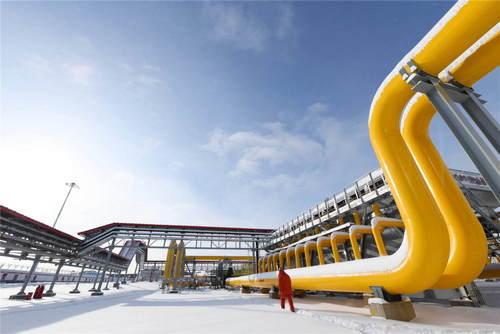 2019年11月19日,在位于黑龙江省黑河市的中俄东线天然气管道北段黑河首站场区,工作人员从管线旁经过。新华社记者王建威摄