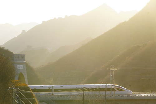 2019年12月30日,G2418次列车驶过居庸关长城。当日,北京至张家口高速铁路开通运营,崇礼铁路同步通车。新华社记者邢广利摄
