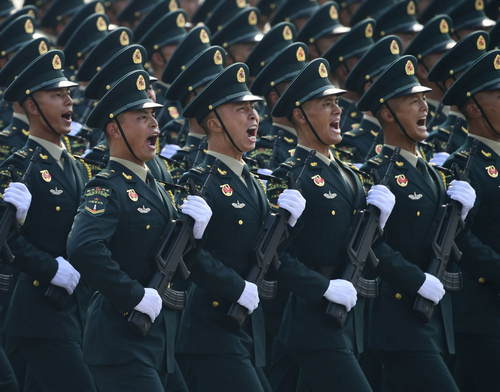 2019年10月1日,庆祝中华人民共和国成立70周年大会在北京天安门广场隆重举行。这是火箭军方队接受检阅。新华社记者郭绪雷摄