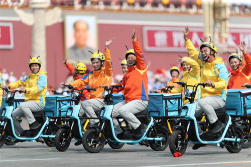 2019年10月1日,庆祝中华人民共和国成立70周年大会在北京天安门广场隆重举行。这是群众游行中的美好生活方阵。新华社记者欧东衢摄
