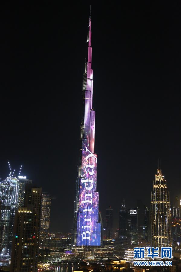 世界第一高楼哈利法塔灯光秀为10周岁“庆生”