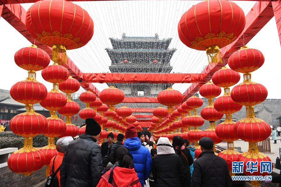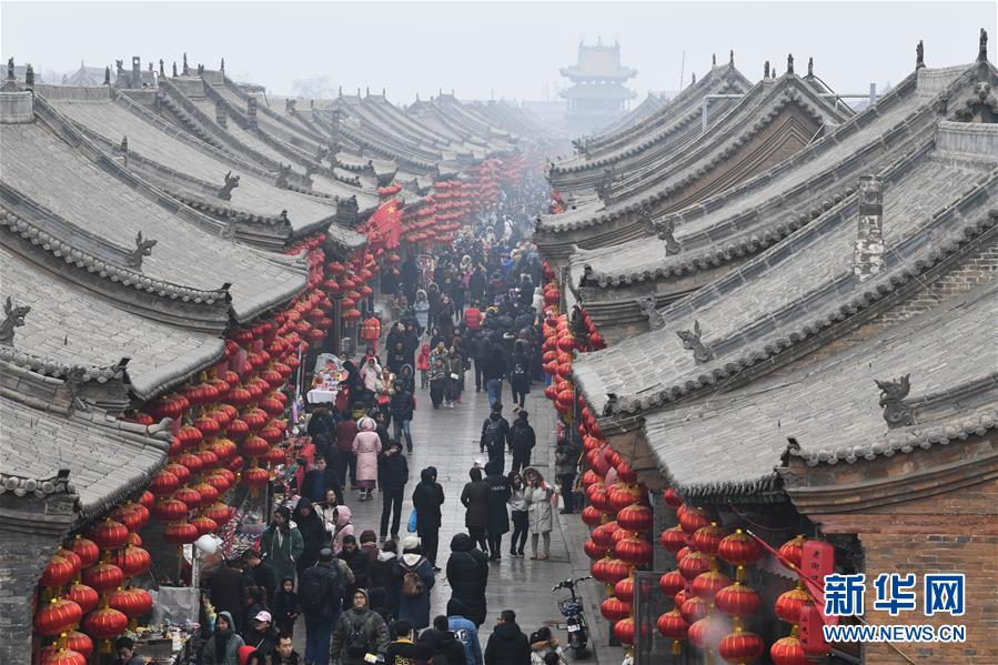 (2019年)2月13日,游客在平遥古城参观。新华社记者杨晨光摄