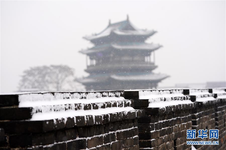 1月5日拍摄的平遥古城迎薰门城楼和城墙。新华社记者詹彦摄