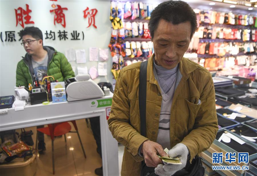 完成一笔搬运业务后,冉光辉清点自己的劳务费(1月5日摄)。新华社记者王全超摄