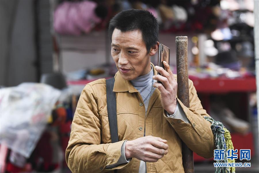 冉光辉接到一项搬运业务的电话(1月5日摄)。新华社记者王全超摄
