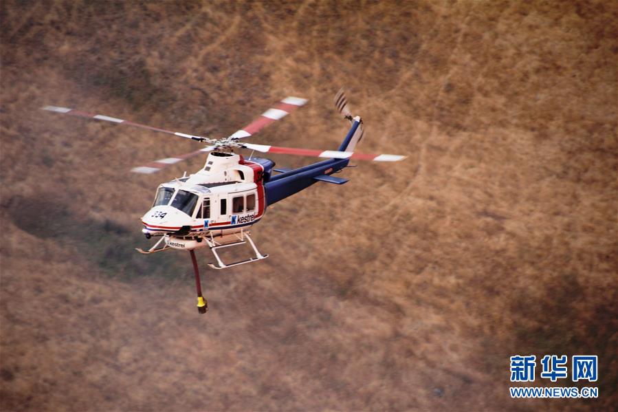 2019年12月20日,在澳大利亚维多利亚州西部,一架直升机在一处火点参与灭火。新华社发(维多利亚州消防局供图/韦恩·里格斯摄)