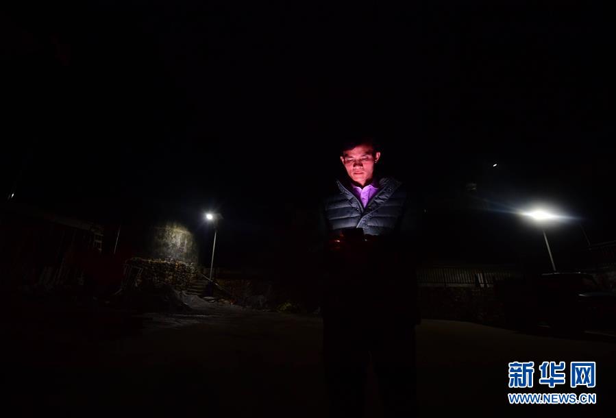 八好村驻村第一书记韦德王在去贫困户家走访途中查看刚刚收到的扶贫信息(1月6日摄)。新华社记者黄孝邦摄