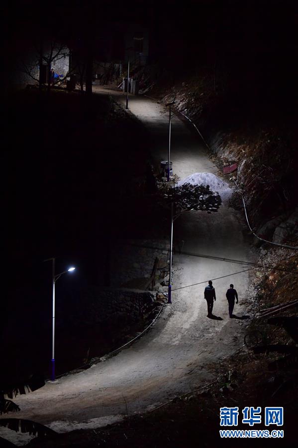 八好村驻村第一书记韦德王(左)和村干部去贫困户家里走访(1月6日摄)。新华社记者黄孝邦摄