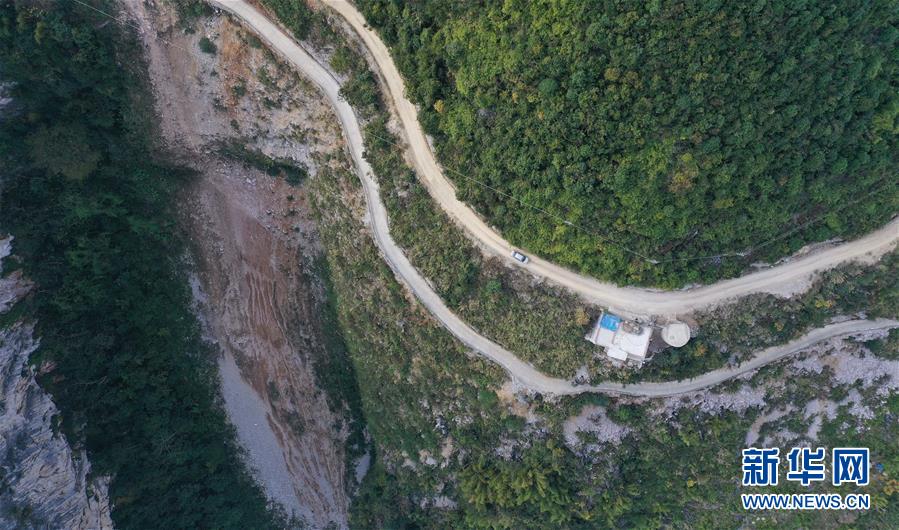 八好村驻村第一书记韦德王驾车前往群众家中,公路的另一侧是两百多米深的悬崖(2019年12月16日摄)。新华社记者黄孝邦摄