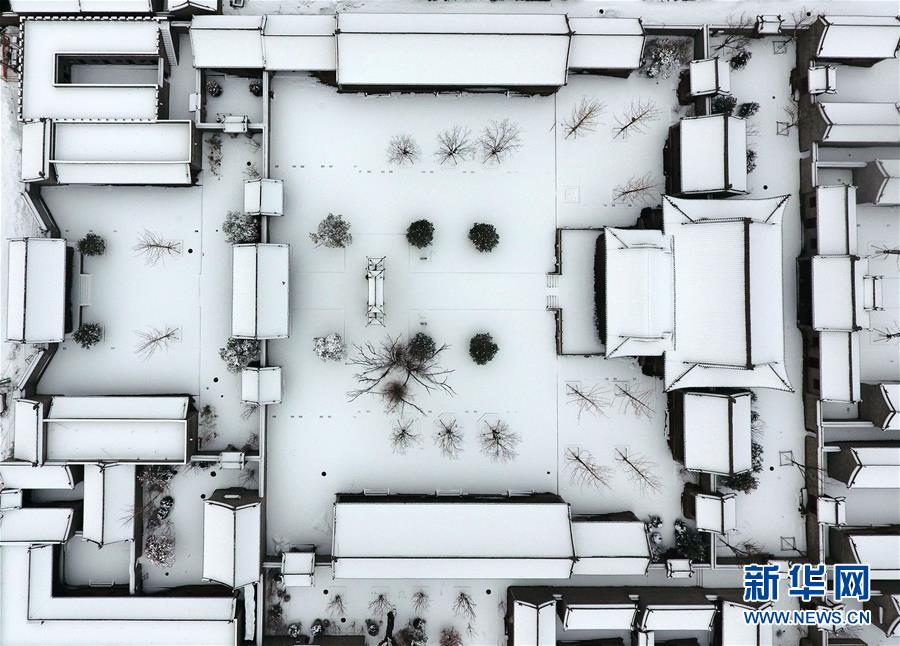 这是1月7日拍摄的太原古县城(无人机照片)。当日,山西省太原市迎来降雪,雪后的太原古县城银装素裹,美景如画。太原古县城是晋阳古城遗址的一部分,因其整体格局如同振翅高翔的凤凰,也被称为“凤凰城”。新华社记者曹阳摄