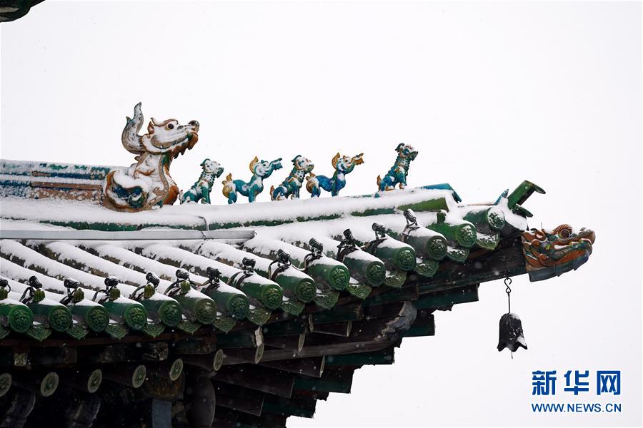 1月5日拍摄的平遥古城迎薰门城楼的外檐斗拱。新华社记者詹彦摄
