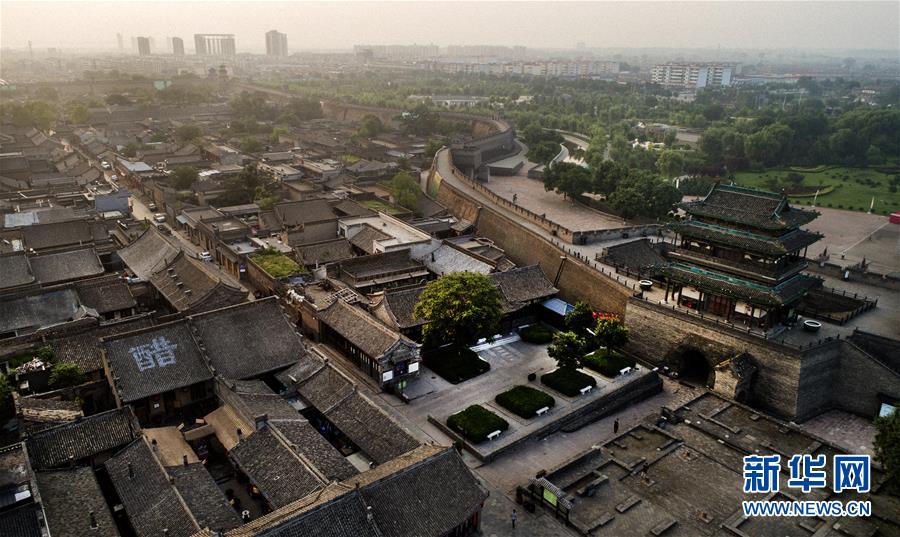 这是7月20日无人机拍摄的晨曦中的平遥古城。